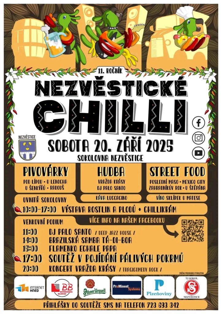 Nezvěstičtí milovníci chilli si  dovolují pozvat širokou veřejnost na 11. ročník Nezvěstického Chilli, které se koná v sobotu 20. září ve zdejší Sokolovně.